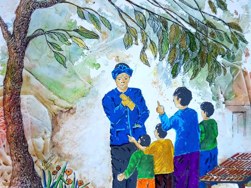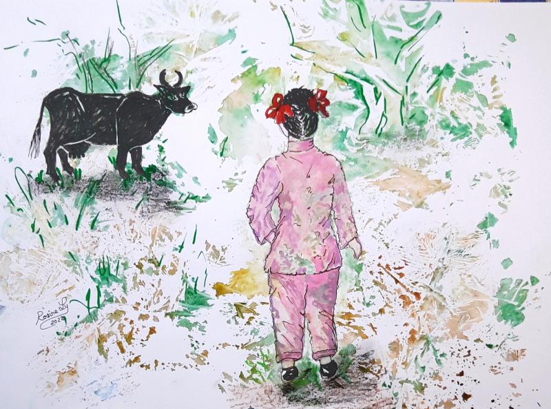 Rosine Ly, originaire du Cambodge, a généreusement accepté d’illustrer l’ensemble des textes écrits par les apprenants. Elle s’est inspirée, quand c’était possible, du pays d’origine des conteurs.euses.