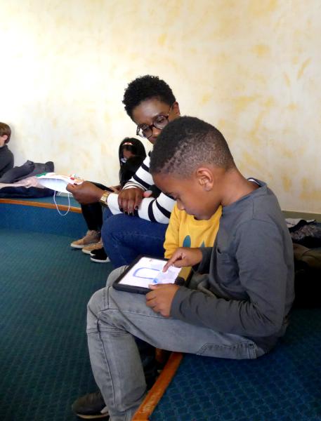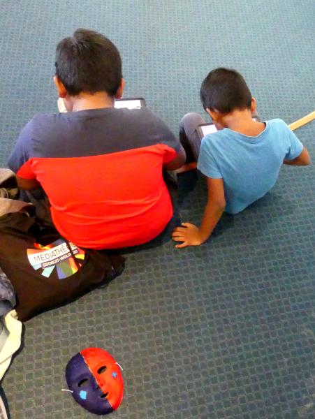 Pour les plus jeunes, l’atelier masque et la sélection d'applis eurent un franc succès ! De nombreux enfants, ainsi que les parents, se sont pris au jeu...