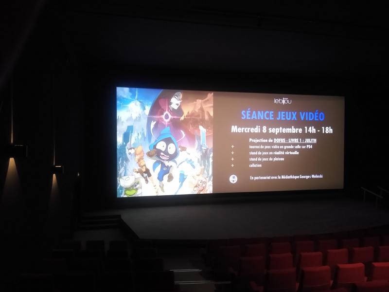 Le 8 Septembre, l'équipe de la Médiathèque était invité par le cinéma Le Bijou pour organiser une séance de jeu-vidéo. A la suite de la projection du film " Dofus livre 1 : Julith", les participants ont pu s'affronter sur le jeu de course " Team Sonic Racing" qui était diffusé sur l'écran de la Salle 1 et tester " Beat Saber ", un jeu en réalité virtuelle.