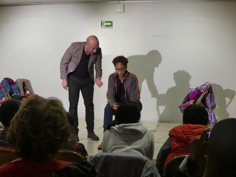 La première, le vendredi soir a pris la forme d'un théâtre forum mis en scène par Axelle David de la compagnie Rendez moi mes sentiments.