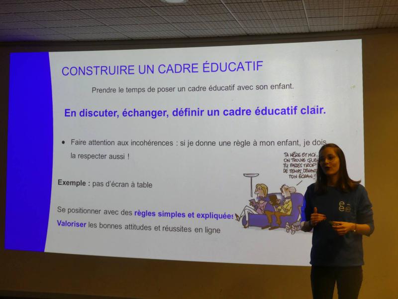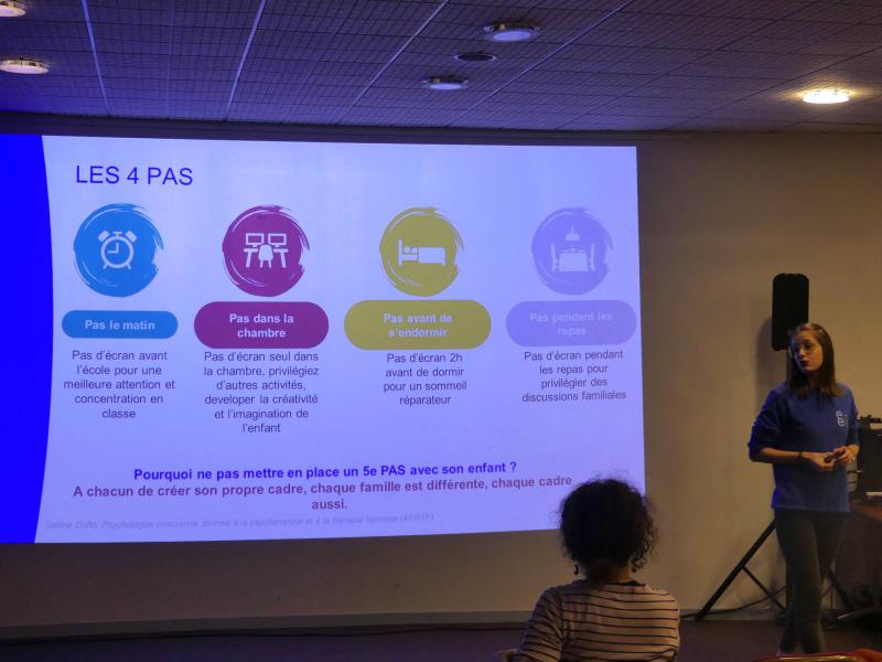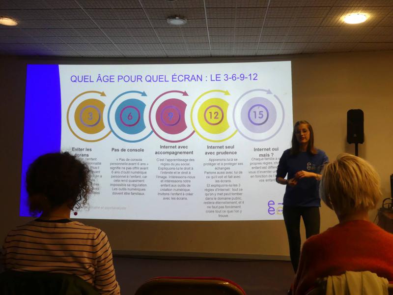 Elle a pu répondre aux questions des parents et donner quelques clés pour aider leurs enfants à mieux gérer leur temps d'écran avec bienveillance et en autonomie.