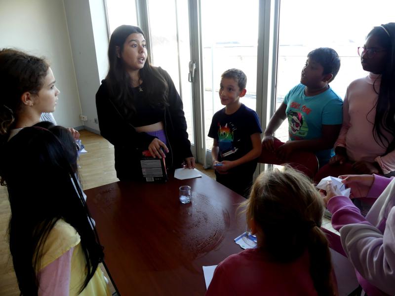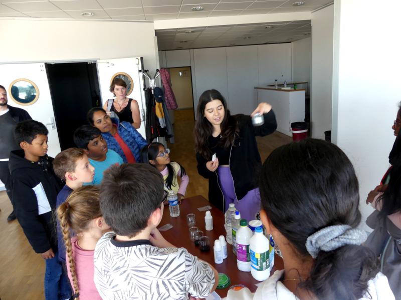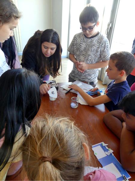 Grâce au matériel apporté par l’animatrice, les enfants ont pu, à l’aide de preuves scientifiques, découvrir qui était le mystérieux coupable d'une scène de crime...