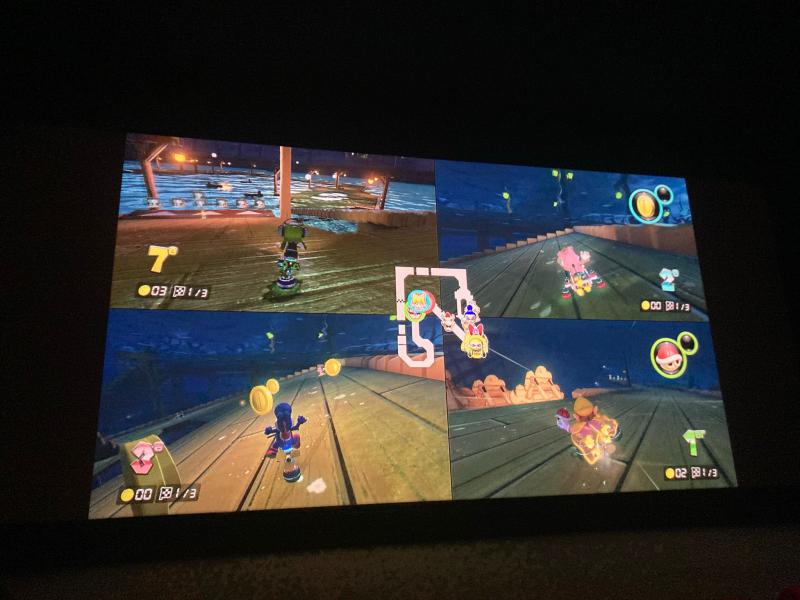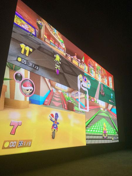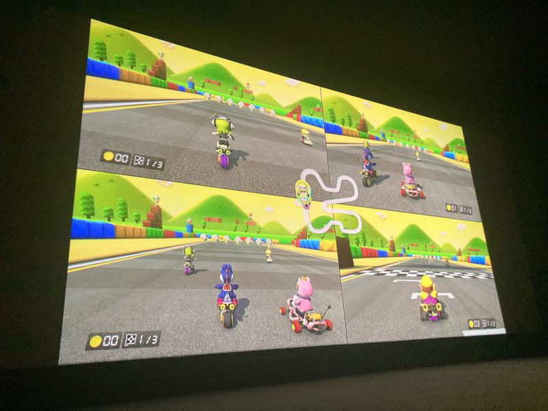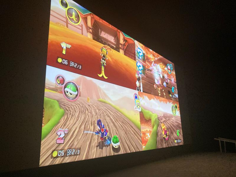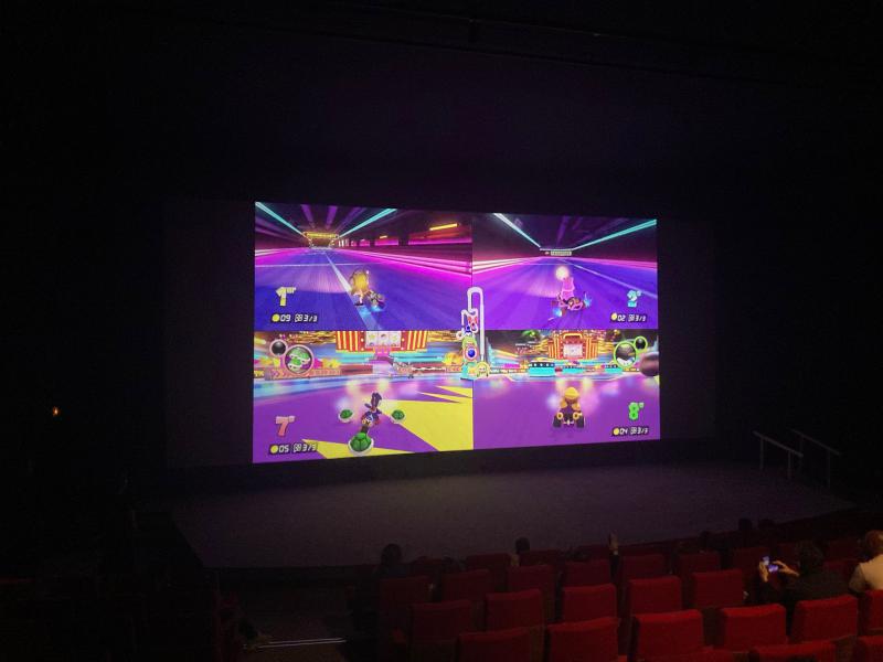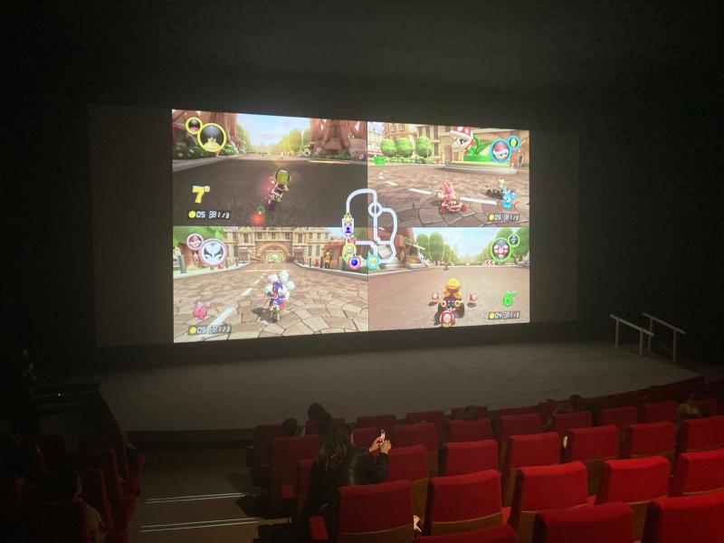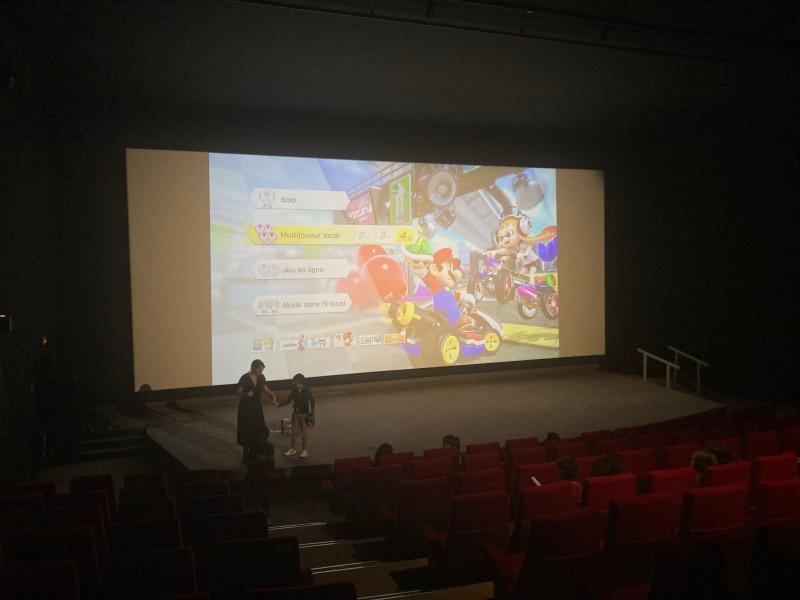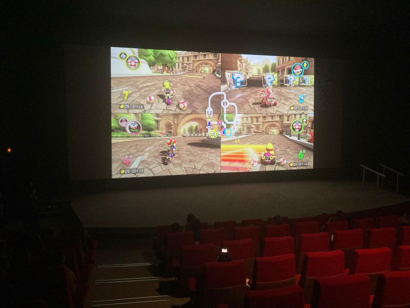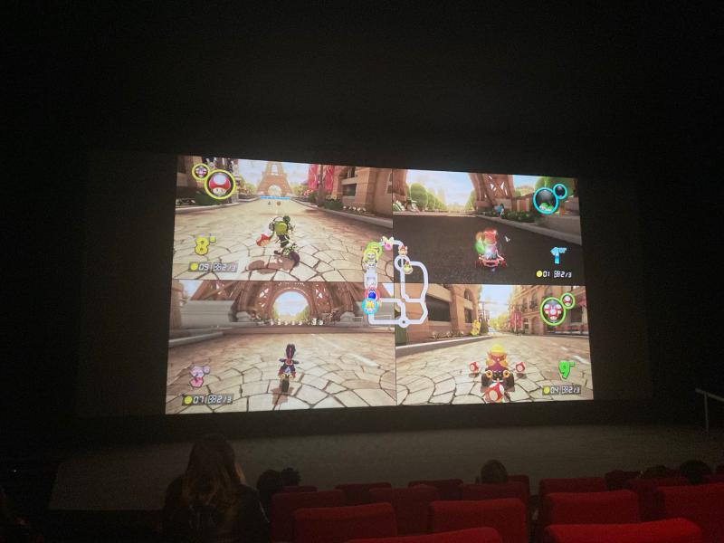 Immédiatement après le film des joueurs et joueuses de tous les âges ont eu la chance de s’affronter à Mario Kart 8 sur l’écran géant de la grande salle.