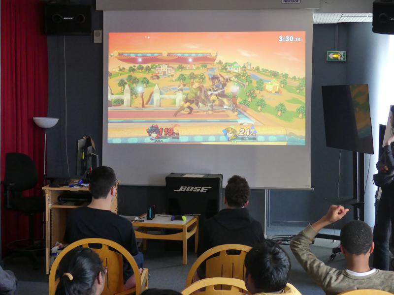 Mercredi 3 mai 2023, 16 adolescents se sont affrontés lors d’un tournoi de Super Smash Bros. Ultimate à l’auditorium.