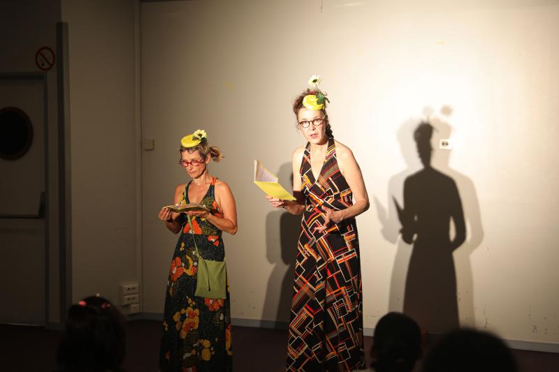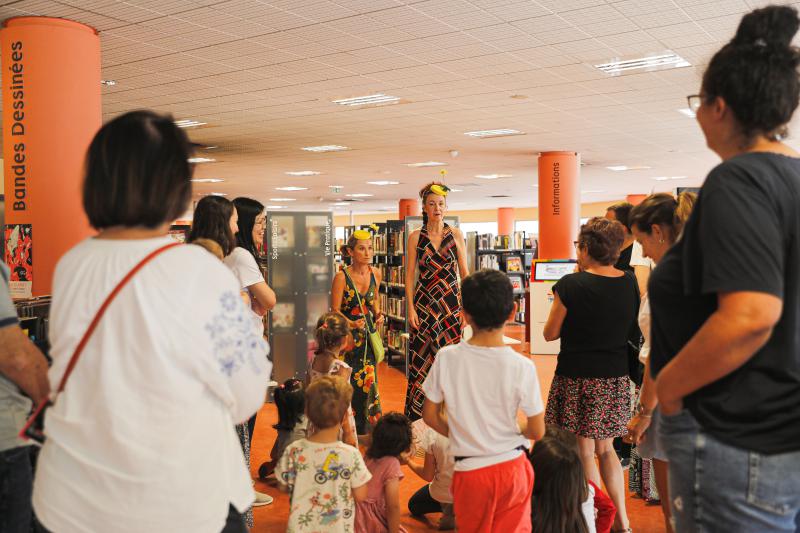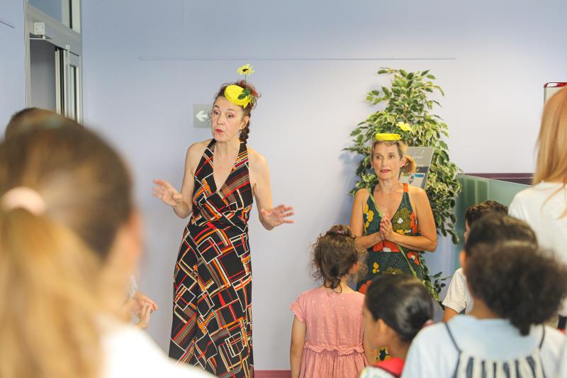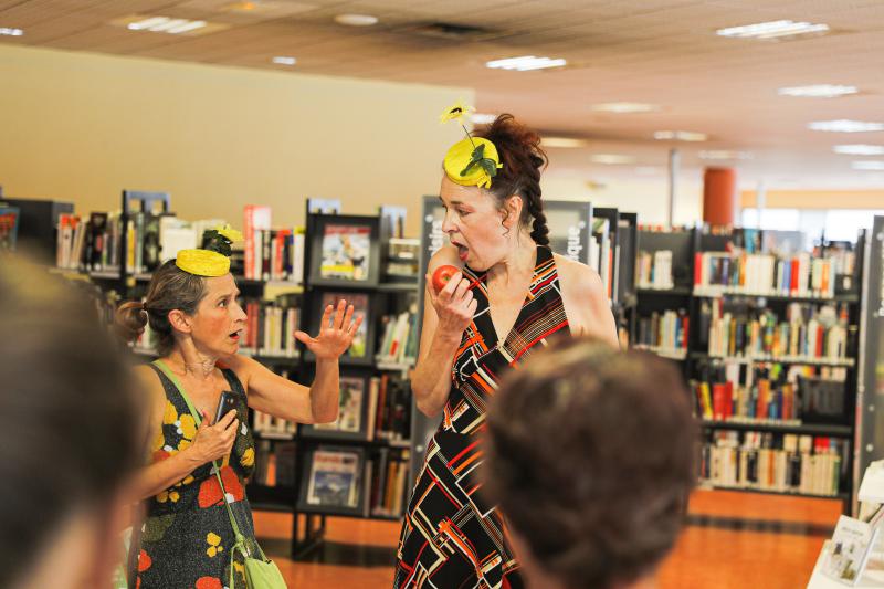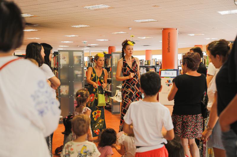 Les participants ont pu en exclusivité assister à une visite unique d’Huguette et Henriette comprenant notamment à l’entrainement des bibliothécaires, un braquage du petit chaperon rouge ou alors des lectures humoristiques mêlées à des numéros de cirque. La visite s’est conclue par un pot à partager ainsi qu’un échange avec les artistes pour un moment privilégié.