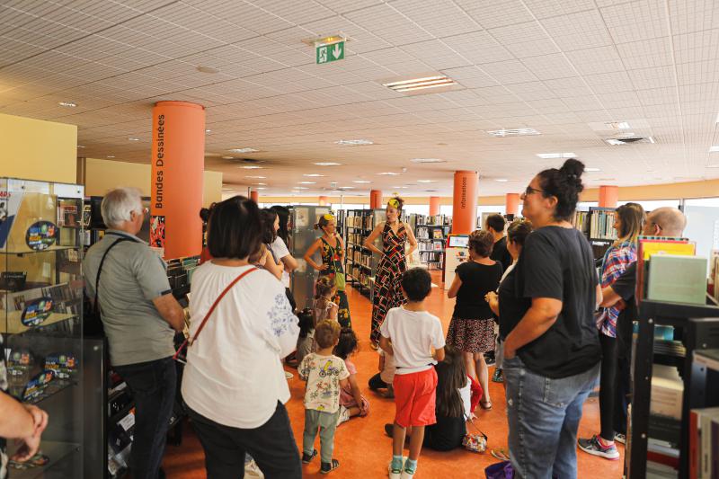 La médiathèque a accueilli samedi 16 septembre la compagnie 3m33 pour une visite décalée de la médiathèque avec leur déambulation « Au bon air des livres » adaptée à la médiathèque de Noisy-le-Grand.