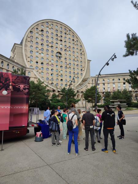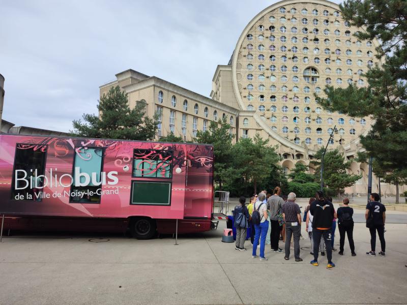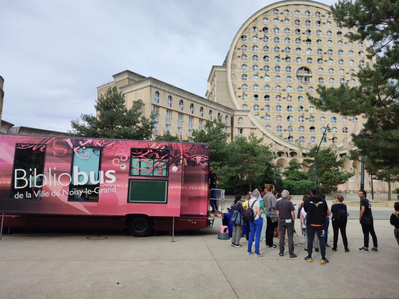 Ainsi, le bibliobus était installé sur la place Pablo Picasso (au milieu du quartier du Pavé-Neuf) durant les deux matinées et dans l’allée Jean-Renoir (Gare RER A Champy) les deux après-midi dans le quartier du Champy . Les visiteurs ont pu alors découvrir une exposition sur ces bâtiments majestueux, des extraits de films et une sélection d’ouvrages, l’occasion également pour eux d’emprunter des documents ou de faire leur carte d’adhésion au réseau de la médiathèque.