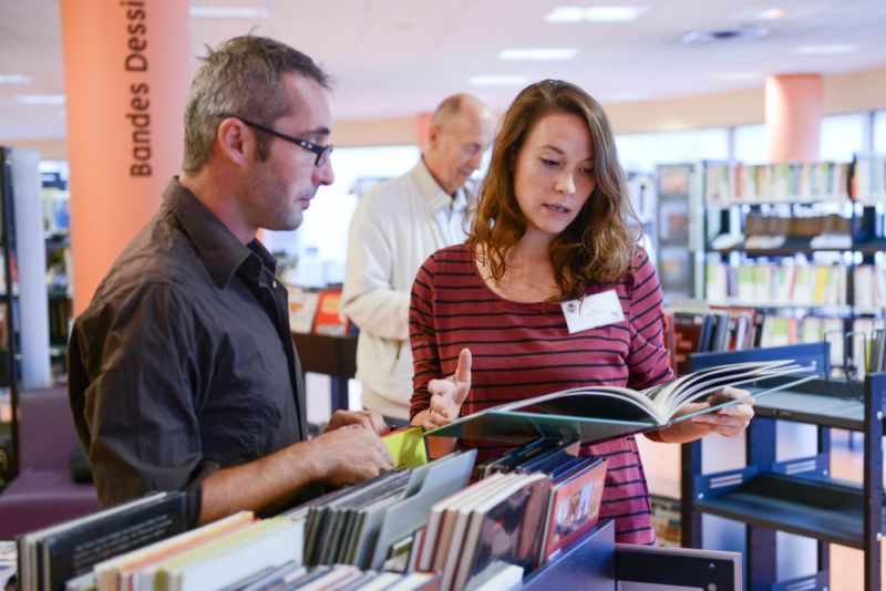 Au quotidien, toute l'équipe met un point d'honneur à vous accueillir et à vous conseiller, ainsi qu'à vous proposer des sélections, des nouveautés et coups de cœur. À votre écoute, les bibliothécaires répondent à vos questions et vous orientent dans les services et les collections pour que vous puissiez profiter pleinement de votre visite. Vous ne trouvez pas le document que vous recherchez en rayon ? Des cahiers sont à votre disposition dans la médiathèque afin que vous puissiez nous faire des suggestions d'achats !